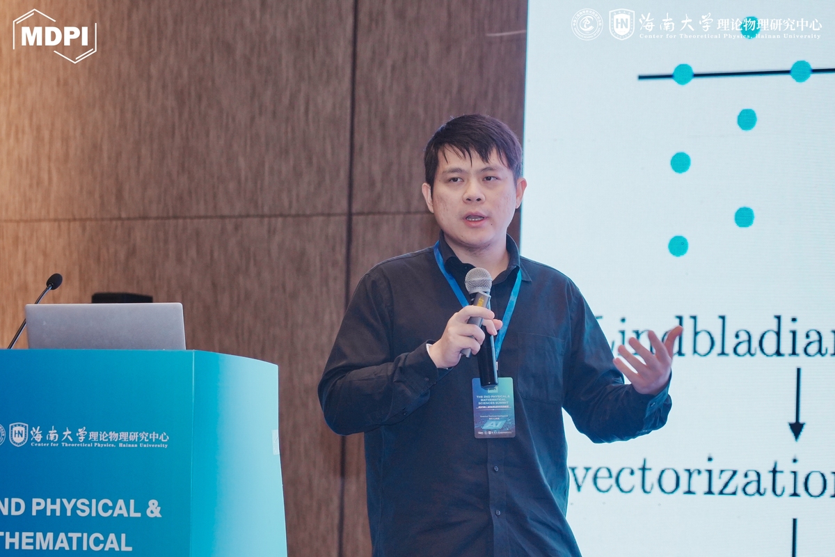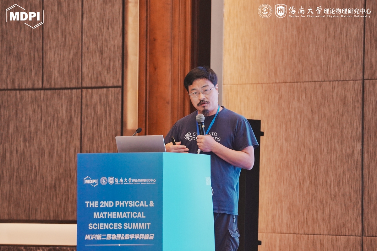 李颖莉博士代表MDPI致辞,感谢承办方海南大学及与会嘉宾的支持。并介绍了 MDPI 在物理、数学和量子AI领域的出版进展,如Universe、Entropy、Mathematics、Algorithms等期刊已成为领域内学者信赖的交流平台。她强调,MDPI 将继续通过严格高效的同行评审与开放获取出版,助力科研成果快速传播与学界合作。