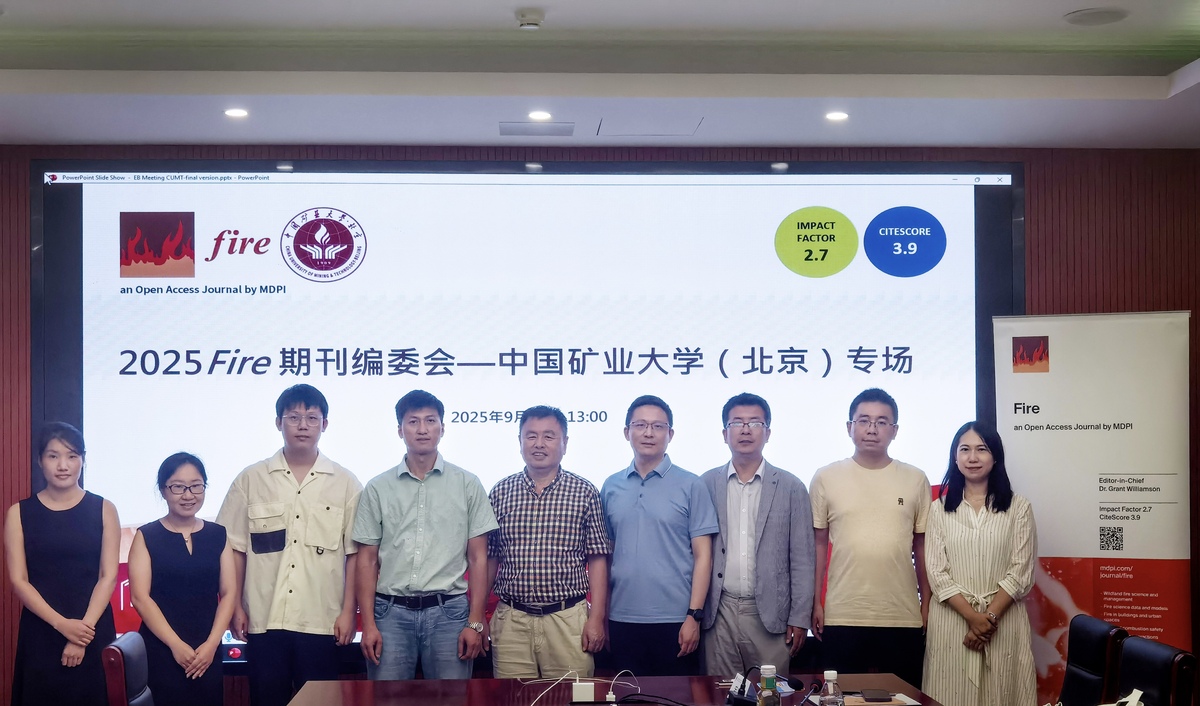 金秋送爽启新程,学术交流正当时。2025年9月12日,2025 Fire 期刊编委会——中国矿业大学 (北京) 专场成功举办。来自中国矿业大学 (北京) 的李成武教授、刘伟教授、赵金龙教授、吴德建教授、姚勇征副教授、陶振翔副教授、徐童博士、龙增博士8位学术编辑同 Fire 期刊代表就火灾安全研究和期刊的发展态势进行了深入探讨。