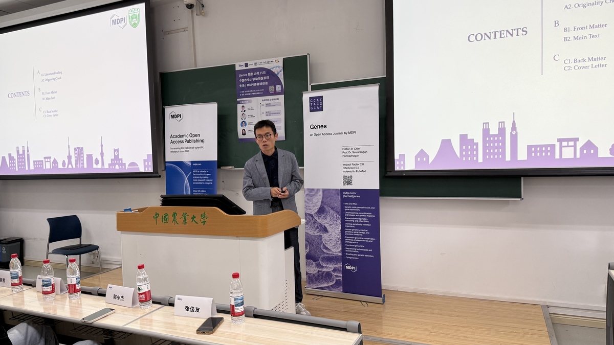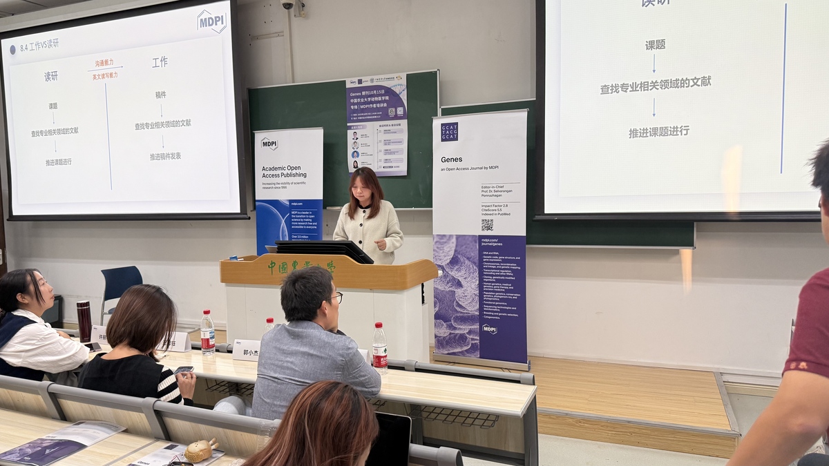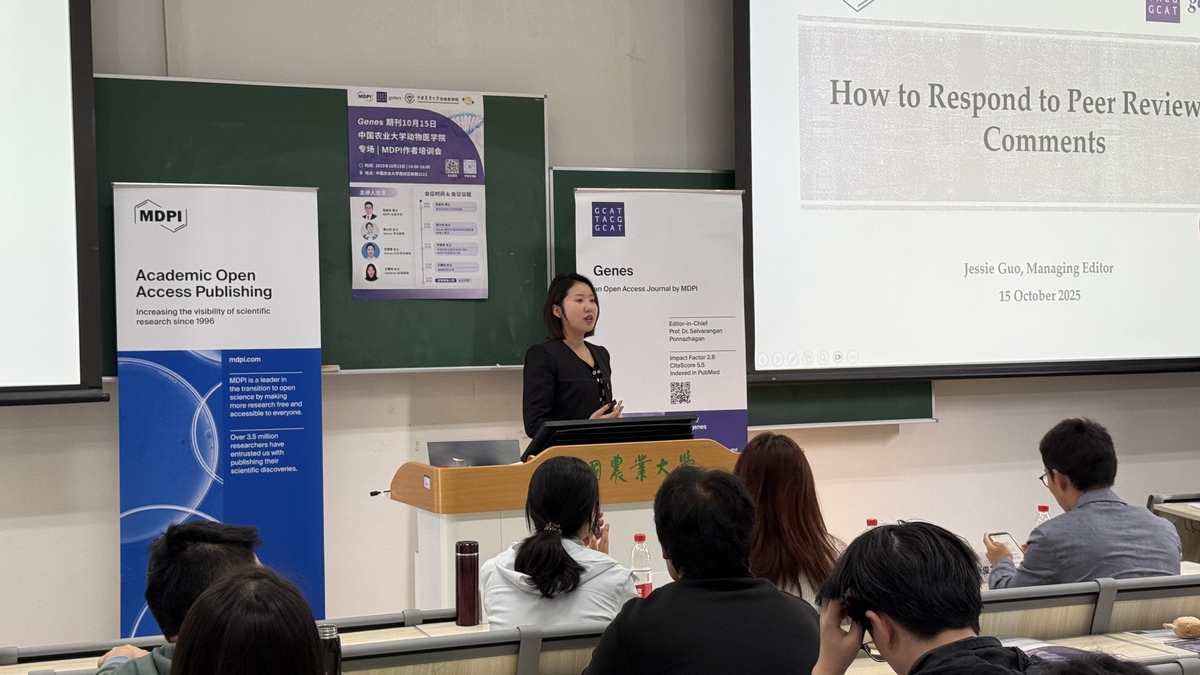 2025年10月15日,Genes 期刊在中国农业大学成功举办了一场作者培训会。本次活动吸引了众多来自动物医学院的青年学者们积极参与,现场座无虚席,学术氛围浓厚。作者培训会旨在为科研工作者提供高质量的学术出版指导,助力青年学者提升英文论文写作能力与投稿效率。