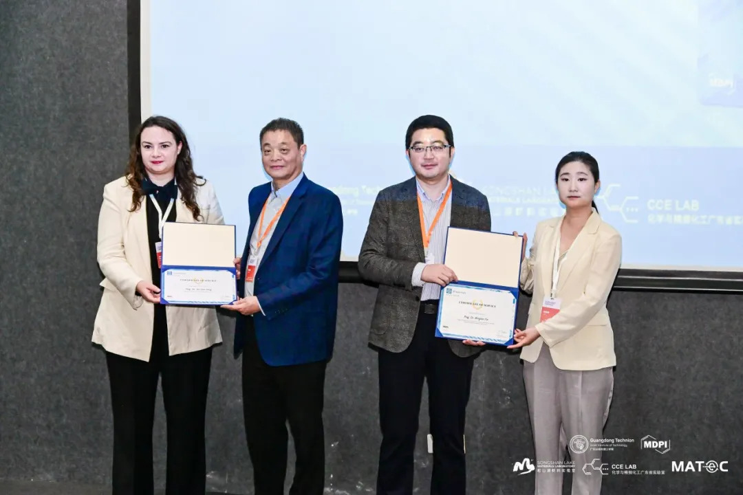 AI Materials 聚焦人工智能在材料科学中的应用,由龚新高院士担任荣誉主编,北京航空航天大学孙志梅教授担任主编,苏州大学尹万健教授担任副主编。孙志梅教授因行程原因未到场,MDPI材料学科出版经理Anamaria Vartolomei博士及期刊出版人张慧婷博士为龚新高院士及尹万健教授颁发主编证书。