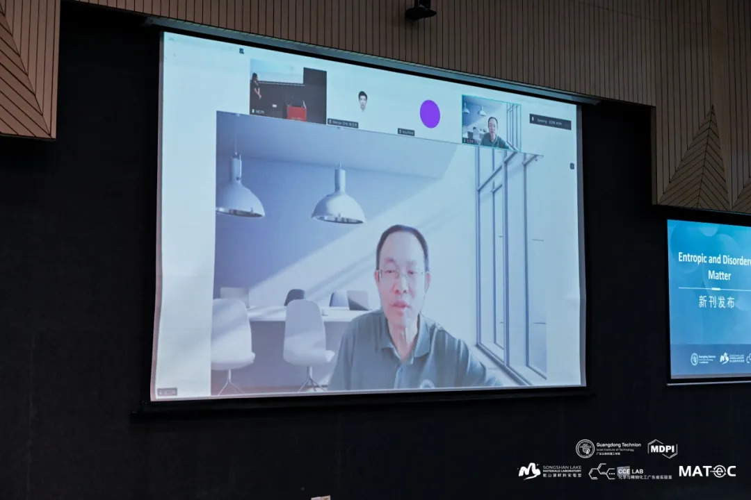 汪卫华院士因行程原因未能到场,通过线上连线发表致辞。他感谢管鹏飞研究员、张博研究员等21位编委为期刊筹备所付出的努力,并表示世界上多数材料体系复杂,而以往研究更多聚焦于相对简单的材料。人工智能的进步让科学家得以重新关注复杂体系,这也是期刊创办的初衷。期刊将聚焦学科交叉,充分利用AI赋能,力争在国际学术界取得认可。