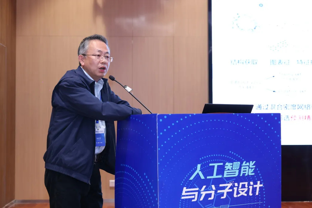 浙江大学侯廷军教授的报告以“基于生成式AI和大模型的药物设计方法研究”为题目,强调将新型AI算法引入到新药研发,主要介绍了AI药学的基本概念、近期课题组相关工作的研究进展,以及目前面临的挑战。