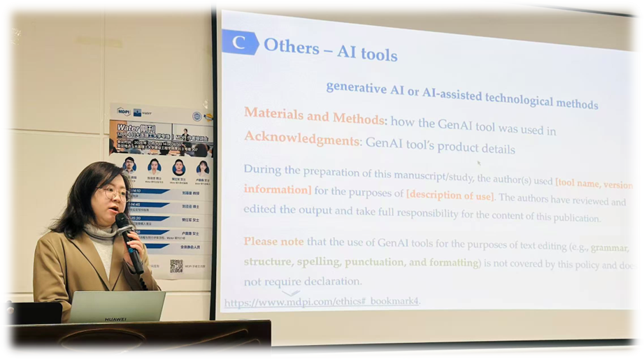 最后,由Water 期刊出版人卢露露女士带来的以“MDPI文章处理流程与同行评审流程”为题目的报告,首先介绍了MDPI出版社的全球布局、开放获取理念以及Water 期刊发展历程,随后,卢女士将编辑流程转化为作者视角下清晰可循的路径图,全面解释了从投稿到发表的各个环节以及注意事项,帮助与会者更好地了解MDPI文章处理流程。她尤其强调了“开放同行评审”这一选项,不仅阐述了其增加透明度、给予审稿人认可的优点,更从促进学术交流的本质出发,鼓励作者拥抱这种更开放、更合作的出版新模式。