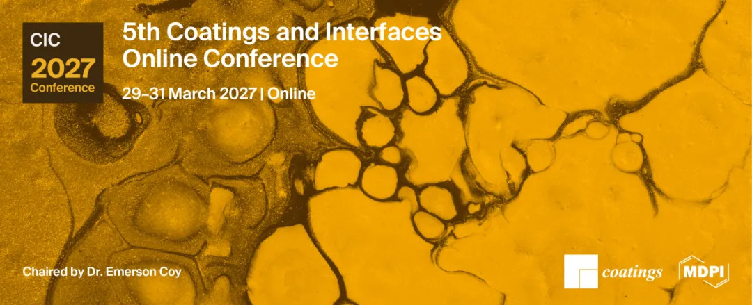 由MDPI Coatings 期刊 (ISSN: 2079-6412; IF: 2.8) 主办的“第五届涂层与界面线上会议 (5th Coatings and Interfaces Online Conference | CIC 2027)”将于2027年3月29日至31日在线上举行。本届大会由波兰波兹南亚当·密茨凯维奇大学Emerson Coy博士担任主席。